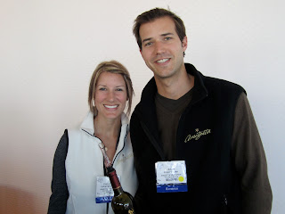 One of my favorite discoveries of the entire Expo were the wines from William Cole Vineyards. William Ballentine was pouring his wines (the William in the winery's name, along with his son Cole) which initially included only the 2007 William Cole Cabernet Sauvignon Cuvee Claire. After a while he cracked open some bottles of earlier vintages including his 2002 and 2005. The wines were amazing. The 2007 was drinking well in its youth but tasting the 2002 alongside you could really see what the wine will become with some bottle age. There were a lot of good wines to be had in the room and at the Expo in general but what made these wines stand out for me was the depth and the complexity of the flavors in the wine. Yes, there were classic Napa Cabernet markers like black currant, a firm backbone and a long finish. But the 2002 layered a touch of earth and graphite within a polished package and smooth elegance. Really outstanding stuff. About $150 a bottle. Another standout were the wines from Trifecta. I thought their 2007 Trifecta Nyarady Family Cabernet Sauvignon was one of those wines where all it takes is one sip and you say "Wow - this is nice." Just a classic fruit-driven Napa Cab from an outstanding vintage that succeeds in finding that elusive intersection between quality and crowd-friendly deliciousness. About $105. Trifecta is almost an entirely Cabernet Sauvignon producer but they did have a little bit of a 2007 Trifecta Russian River Pinot Noir to taste. Maybe it was because I'd tired of tasting so many big red wines (Ladera, Clos Apalta, Trinchero, Brunellos, etc) but the Trifecta Pinot Noir was a luscious wine to fall into. A big, round Russian River Pinot Noir that makes no apologies for being from California. I would've been perfectly happy to grab a table with friends, share a bottle or two of that wine, and spend the night at the Seaport Hotel. Only about 65 cases of the Pinot were made but I hope they ramp production of that in the future. About $45 available to mailing list members only. The People This is where the small-room format of the Grand Cru Lounge worked well for me. After a while you got to bump into people you'd seen previously so you could compare notes and share tips on things to try. I met a really nice young couple that was attending their first Expo (shout out to Matt and Elizabeth!). And after a while the vendors started to interact with each other and connect with guests on a personal level. Here's Christine and Perry Clark. They were pouring their family's wines - a 2006 Amizetta Cabernet Sauvignon that showed quite well with more earth than you find in most Napa Cabs: